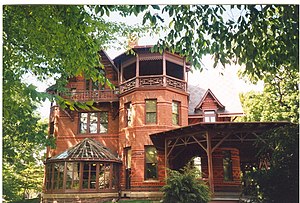 1871 ließ Mark Twain sich in Hartford, Connecticut nieder, wo er 17 Jahre lang als erfolgreicher und bekannter Autor lebte. Er wohnte dort im heutigen Mark Twain House in unmittelbarer Nachbarschaft von Harriet Beecher Stowe, die seine negative Haltung zur Sklaverei in den Vereinigten Staaten ungemein bestärkte. In dieser Zeit schrieb er seine bekanntesten Werke: Roughing It („Durch Dick und Dünn“, 1872), The Adventures of Tom Sawyer („Die Abenteuer des Tom Sawyer“, 1876), Life on the Mississippi („Leben auf dem Mississippi“, 1883) und sein Meisterwerk The Adventures of Huckleberry Finn („Die Abenteuer des Huckleberry Finn“, 1884). 1874 erstand Mark Twain in Boston eine Remington-Arms-Schreibmaschine und lieferte mit Life on the Mississippi als erster Autor seinem Verlag ein maschinengeschriebenes Buchmanuskript ab.[10] Aufgrund einer autobiografischen Notiz wird diese Tatsache oft fälschlicherweise seinem Werk Tom Sawyers Abenteuer zugeschrieben.[11] Seine schriftstellerischen Aktivitäten verband er mit ausgiebigen Reisen.